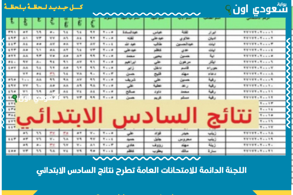- يبحث عن نتائج السادس الابتدائي الدور الأول.