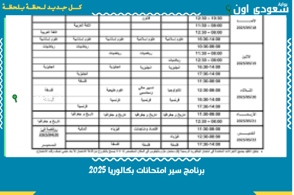 تبدأ امتحانات البكالوريا لجميع الشعب في الجزائر اليوم الأحد 15 يونيو/ جوان 2025م، ويأتي جدول برنامج سير الامتحانات على النحو الآتي:
