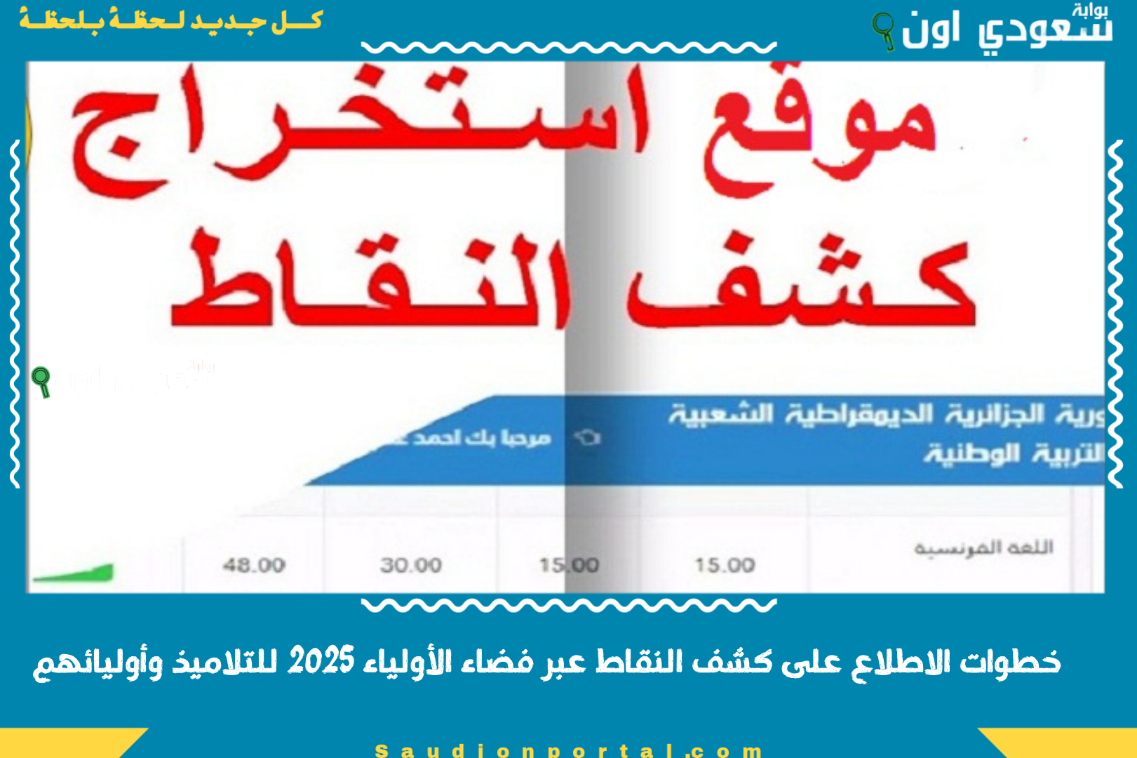 awlyaa education dz inscription أوضحت وزارة التربية الوطنية خطوات الاطلاع على كشف النقاط عبر فضاء الأولياء، مما يُمكن من استخراج نتائج الطلاب بشكل سهل وسريع، وتُعد هذه المنصة من أهم المنصات التي أطلقتها الوزارة سعيًا منها نحو خدمة العملية التعليمية بالشكل الأمثل، ومن خلال موقع سعودي أون سنعرض رابط وخطوات استخراج النتائج.