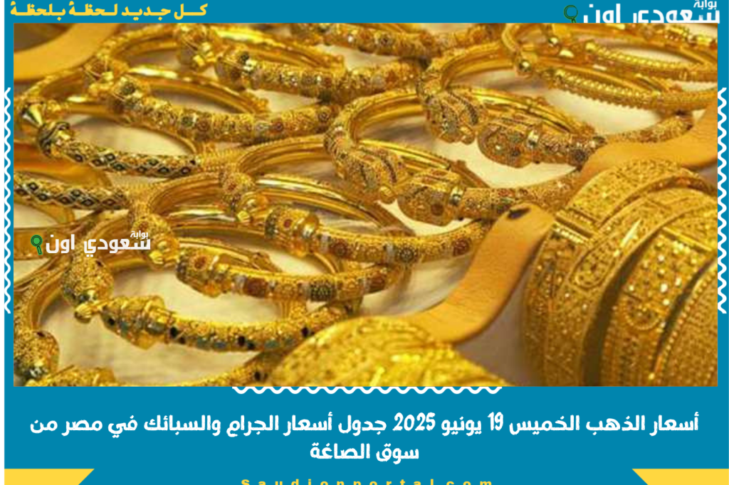 أسعار الذهب الخميس 19 يونيو 2025 جدول أسعار الجرام والسبائك في مصر من سوق الصاغة أسعار الذهب الخميس 19