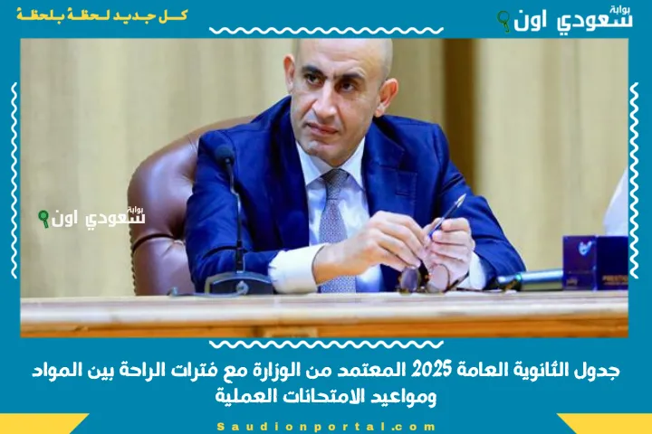 جدول الثانوية العامة المعتمد من الوزارة مع فترات الراحة بين المواد