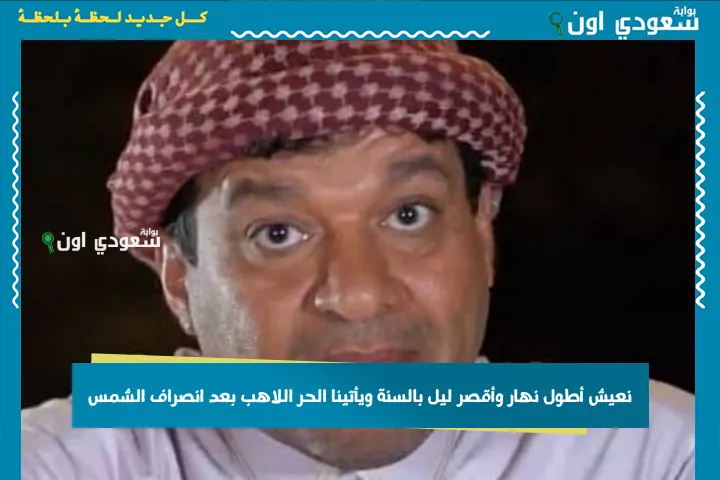 “اليوم السبت 2025/6/21 سنعيش أطول نهار وأقصر ليلة بالسنة، هذه مرحلة حر الانصراف، والذي يقال فيه (لا حر إلا بعد الانصراف)، أي لا يأتينا الحر اللاهب إلا بعدما تنصرف الشمس من الشمال إلى الجنوب، سنلاحظ اشتداد الحرارة نهاية الأسبوع، وحينذاك يبدأ الليل يأخذ من النهار لمدة ستة شهور تقريباً”.