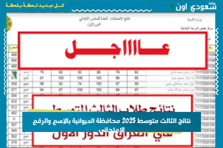 قامت وزارة التربية العراقية بإطلاق رابط نتائج الثالث متوسط 2025 محافظة الديوانية، مما يُمكن الطلاب وأولياء الأمور من إجراء الاستعلام عن النتيجة بشكل إلكتروني سهل وسريع، وذلك دون الحاجة إلى التوجه للمدرسة التابع لها كل طالب، مما يوفر الكثير من الوقت، ومن خلال موقع سعودي أون سنعرض رابط وطريقة الاستعلام.
