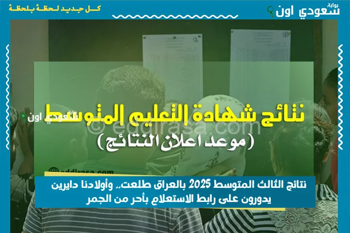 ظهرت نتائج الطلاب في نتائج الثالث متوسط 2025 في محافظات العراق، مما جعل الجميع في حالة من التساؤل المستمر عن الرابط والخطوات التي يمكن أن يتم الاستعلام من خلالها عن النتيجة ودرجات الطلاب، ويمكن أن يتم التعرف على كامل التفاصيل الخاصة بطلاب الثالث المتوسط وخطوات الاستعلام الآن عبر موقعنا سعودي اون.