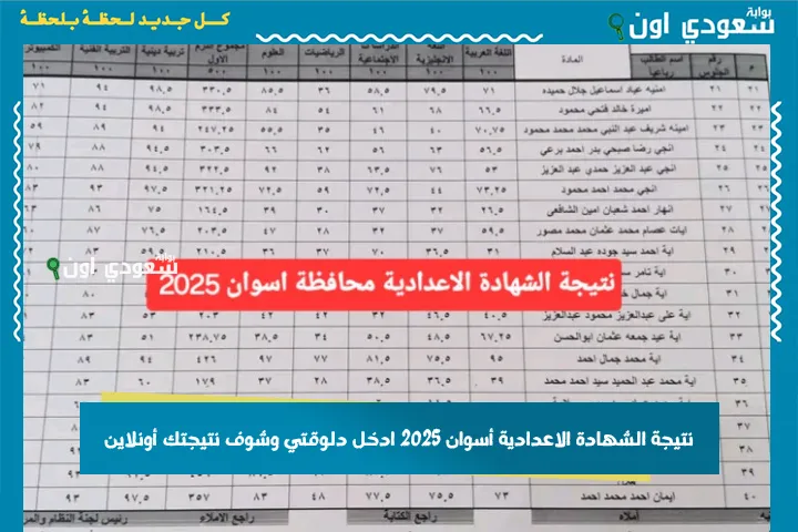 اقرأ أيضًا: نتيجة الشهادة الاعدادية 2025 محافظة أسوان بالاسم ورقم الجلوس من موقع المديرية
