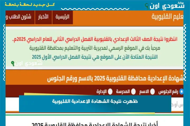 في حالة من الترقب والمتابعة للتعرف على نتيجة الشهادة الاعدادية محافظة القليوبية 2025 حيث تم الإعلان عن ظهور نتيجة الصف الثالث الإعدادي في عدد من محافظات مصر، وقد أعلنت وزارة التربية والتعليم أن خلال هذا الأسبوع سوف تتوالى ظهور عدد من النتائج، ومن خلال موقع سعودي اون سوف نتعرف على التفاصيل.