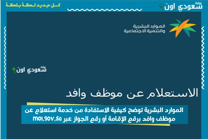 الموارد البشرية توضح كيفية الاستفادة من خدمة استعلام عن موظف وافد برقم الإقامة أو رقم الجواز إلكترونيًا، حيث إن الوزارة تعمل على تقديم الكثير من الخدمات عبر موقعها الرسمي، ويكون الغرض من هذه الخدمة مساعدة أصحاب العمل والأفراد في الحصول على معلومات دقيقة وصحيحة وموثوقة حول العاملين الوافدين بالمملكة العربية السعودية؛ لهذا من خلال موقع سعودي أون سوف نوضح التفاصيل.