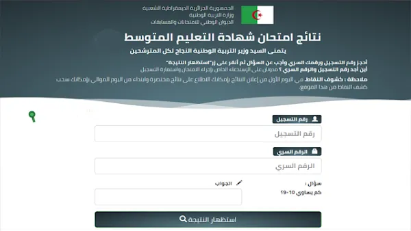 أتاحت وزارة التربية الوطنية في الجزائر رابط مخصص للاستعلام عن نتائج شهادة التعليم المتوسط bem للعام الحالي 2025 تسهيلًا على الطلاب وأولياء الأمور، ويتم الاستفادة منها من خلال اتباع الخطوات التالية: