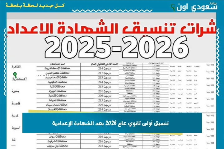 في الوقت الحالي وبعد أن تم الإعلان بشكل رسمي عن نتائج الشهادة الإعدادية في معظم محافظات الجمهورية تم الإعلان عن تنسيق أولى ثانوي عام 2026 في بعض المحافظات حتى يتمكن جميع الطلاب من التقديم في هذه المرحلة التعليمية، ومن خلال موقعنا سعودي اون سوف نتعرف على التفاصيل.