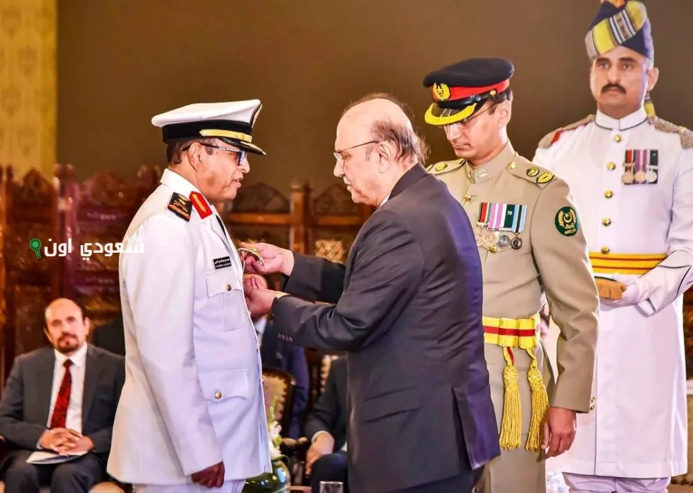 منح الرئيس الباكستاني وسام نيشان الامتياز العسكري لرئيس أركان القوات البحرية السعودية، في خطوة تعكس تعزيز العلاقات بين البلدين.