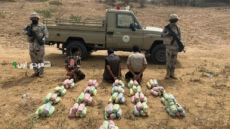 أحبطت الدوريات البرية لحرس الحدود في منطقة جازان عملية تهريب كبيرة، حيث تم القبض على تسعة من المخالفين لنظام أمن الحدود من الجنسية الإثيوبية، خلال محاولتهم تهريب 180 كيلوجرامًا من نبات القات المخدر تم اتخاذ الإجراءات النظامية الأولية تجاههم، وتسليمهم والمواد المضبوطة للجهات المختصة.
