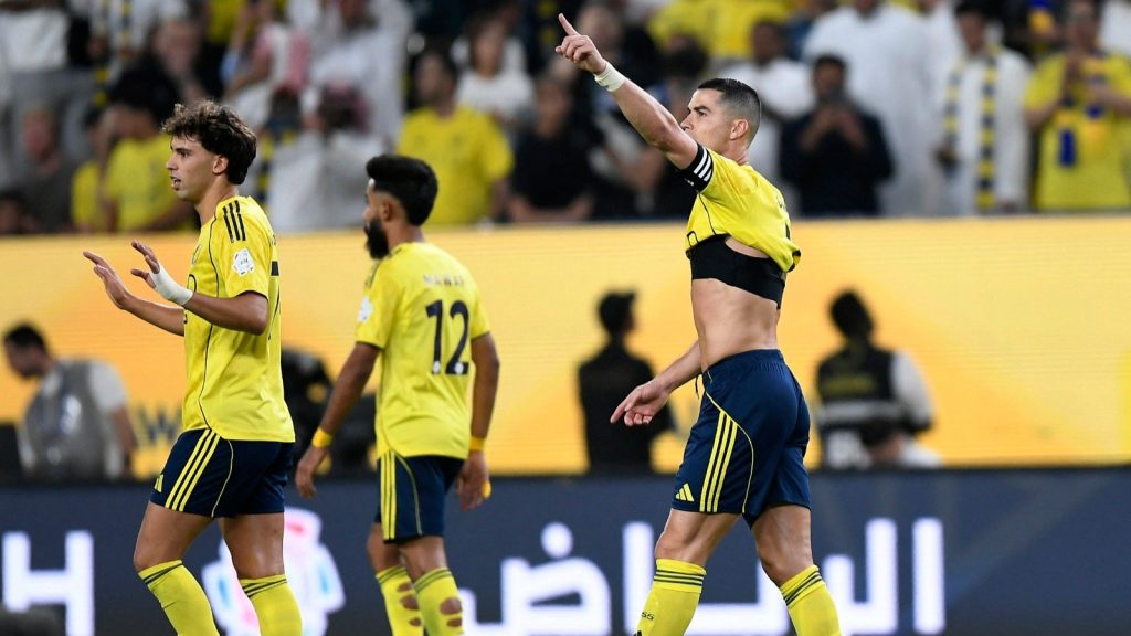 وافتتح جواو فيليكس التسجيل للنصر في الدقيقة 25، ليصل إلى هدفه التاسع ويعتلي صدارة هدافي الدوري السعودي، قبل أن يعزز كريستيانو رونالدو التقدم بهدف ثاني في الدقيقة 88، ليصل بذلك إلى الهدف رقم 950 في مسيرته الكروية، متبقيًا 50 هدفًا فقط للوصول إلى رقم 1000.